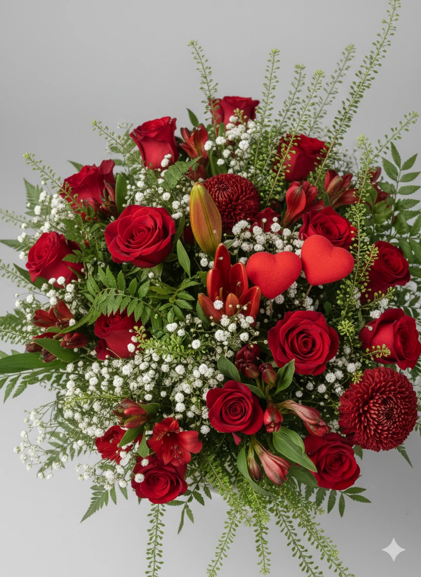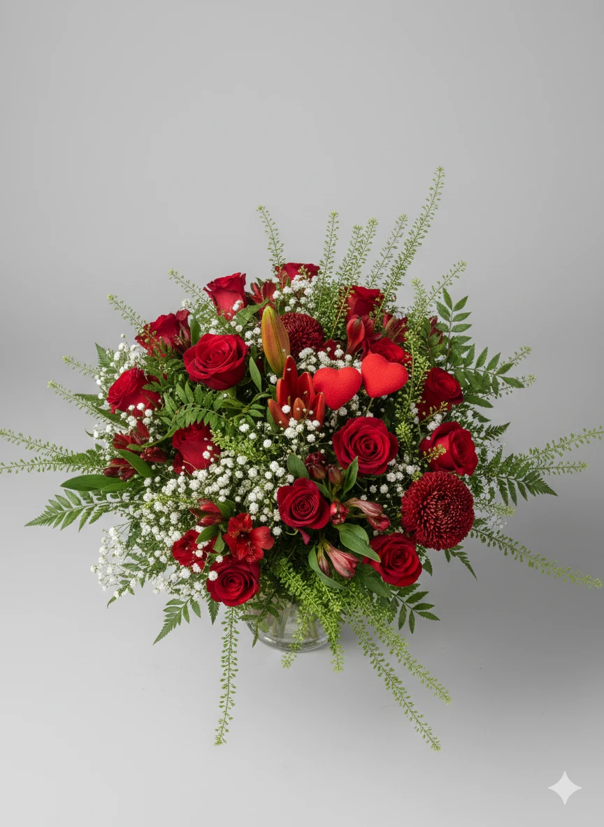 À travers Cœur Enlacé, l’univers de la Saint-Valentin prend vie dans toute sa sincérité. Ce bouquet symbolise l’union, la chaleur et la complicité — deux cœurs qui se retrouvent, se complètent et s’enlacent dans un même élan. Il évoque ces instants précieux où tout semble suspendu, où un regard suffit à tout dire.