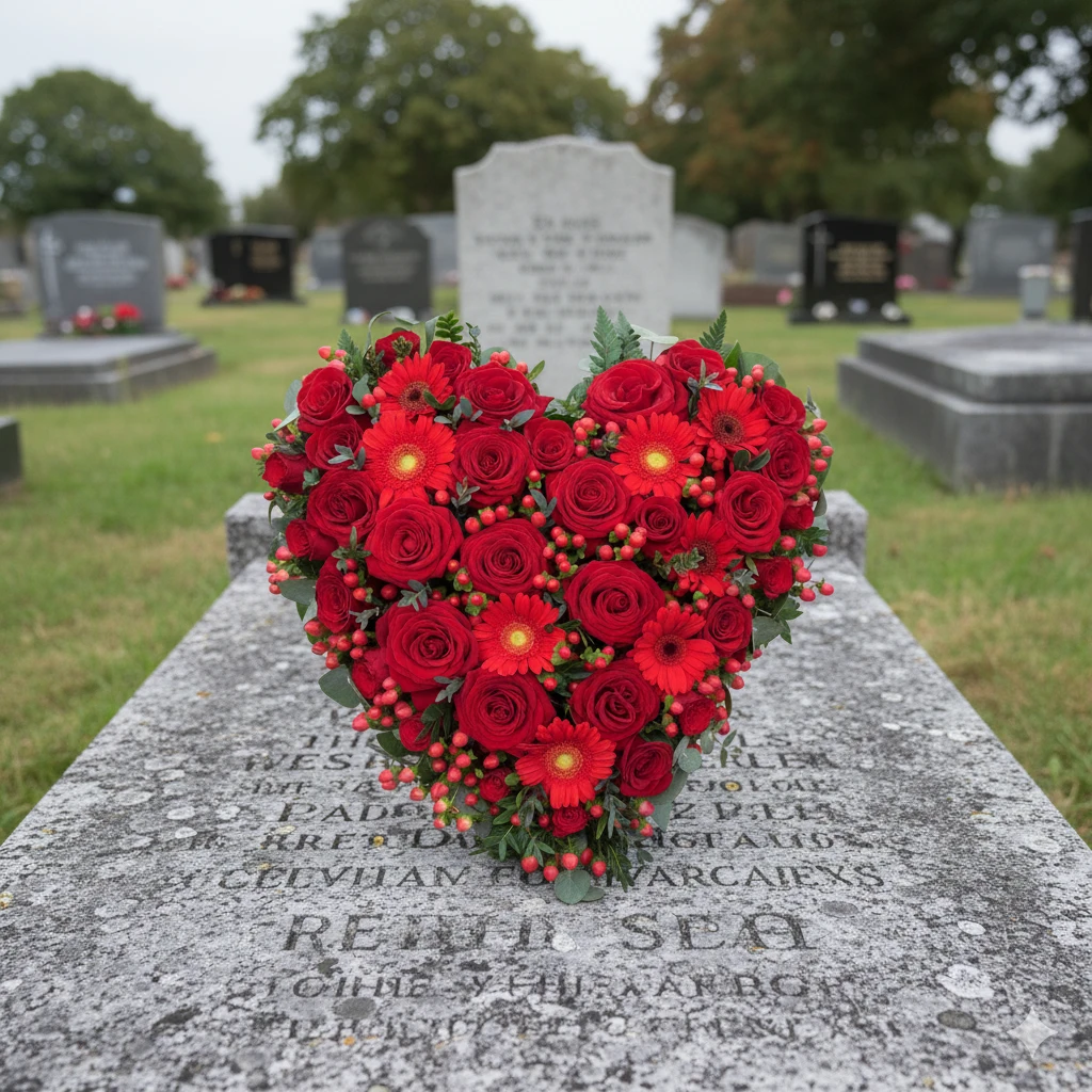 Véritable hommage du cœur, cette composition florale est un geste d’amour et de respect, à la fois intime et universel.